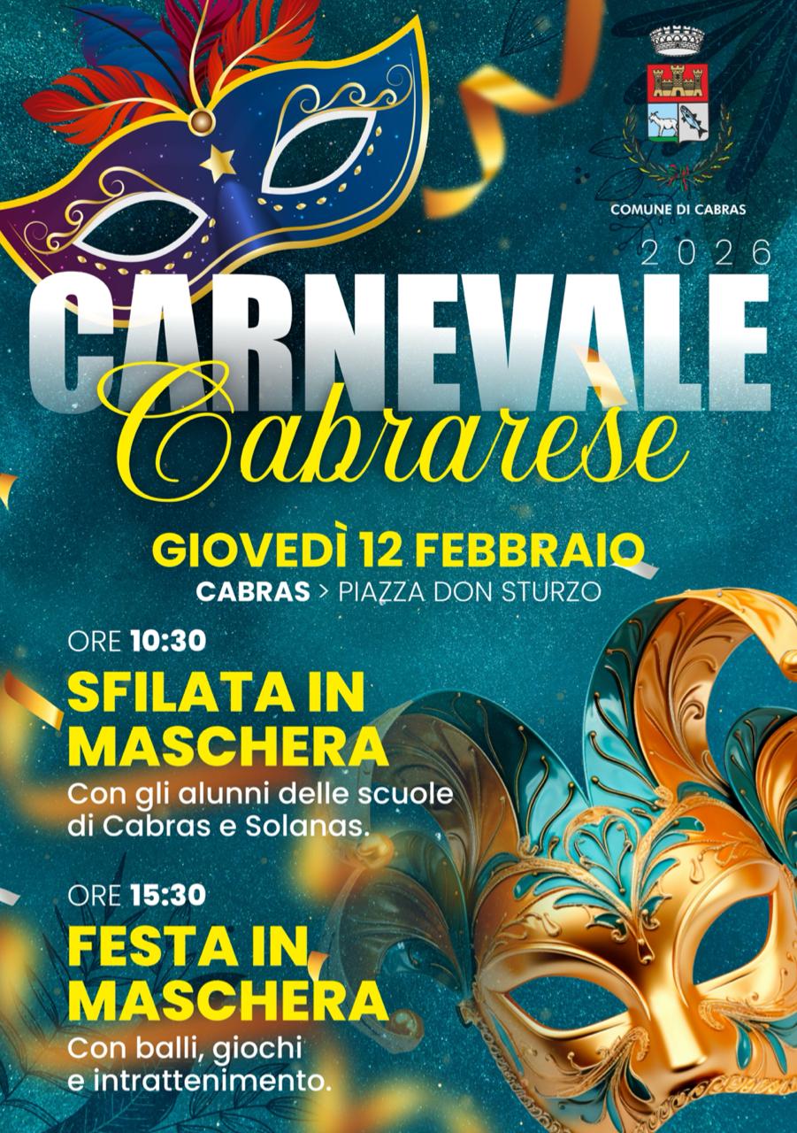 L’Amministrazione comunale, su proposta dell’Assessorato alla Cultura e agli Spettacoli, organizza i festeggiamenti del Carnevale Cabrarese 2026.