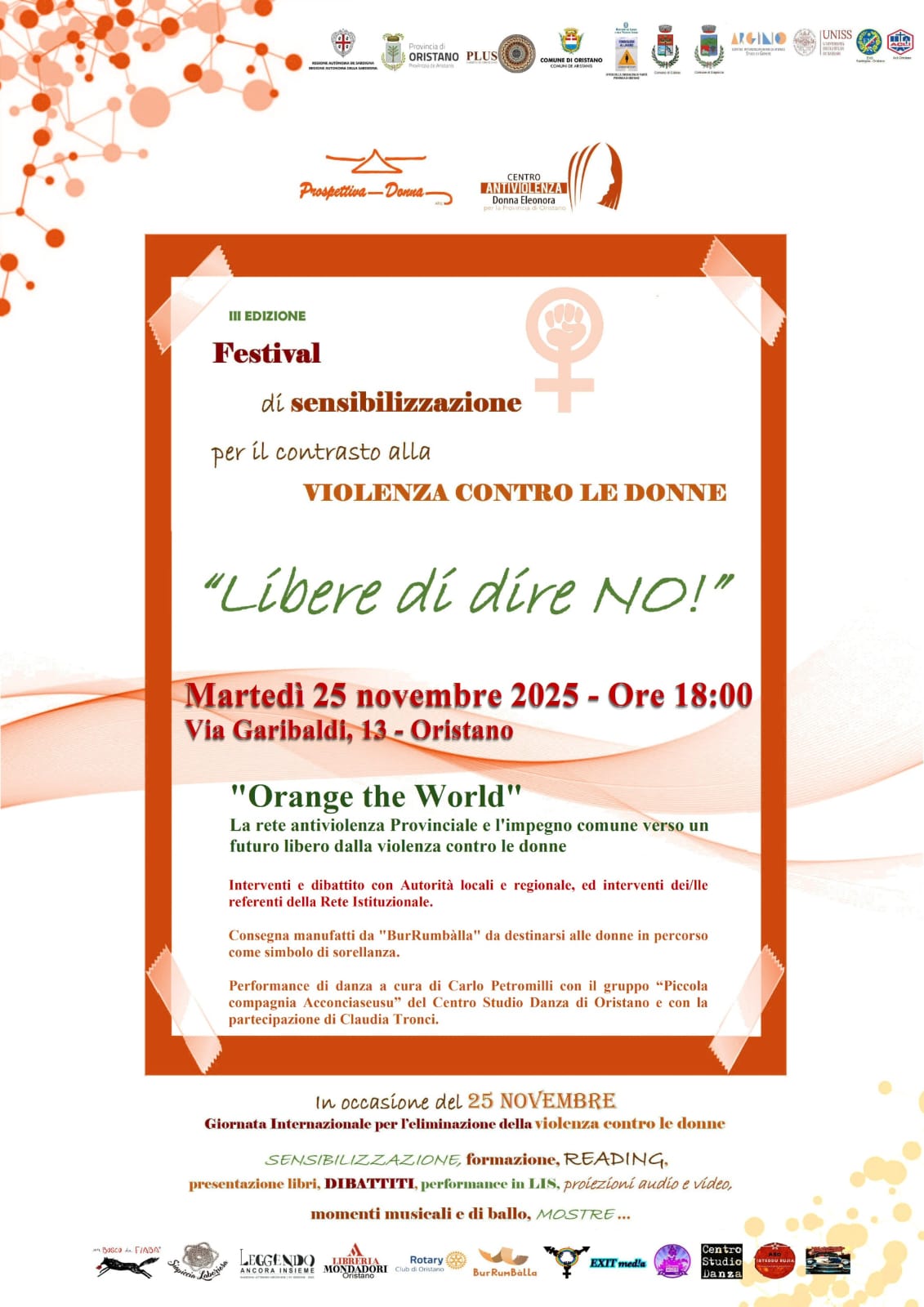 “Dedichiamo la giornata del 25 Novembre a tutte le donne che hanno subito o stanno subendo violenza, ma anche a tutte coloro che ancora non hanno maturato tale consapevolezza. A loro virtualmente e concretamente il Centro Antiviolenza vuole aprire le porte del centro, perché la violenza di genere, in ogni sua forma, non può più essere tollerata. La nostra missione è chiara: offrire uno spazio di ascolto e accoglienza a partire da un ambiente sicuro e non giudicante per le donne dove possano trovare ascolto, supporto e gli strumenti necessari per uscire dalle potenziali situazioni di pericolo. Imprescindibilmente il compito del Centro antiviolenza è anche quello di promuovere la conoscenza e la consapevolezza. Il Festival che ruota intorno al 25 Novembre ha lo scopo di sensibilizzazione Istituzioni e la comunità tutta, a partire dalle scuole, nella de-costruire di stereotipi e pregiudizi che sono alle basi di questo fenomeno strutturale e complesso. Promuovere una cultura del rispetto e della parità di genere permette di creare conoscenza e speranza verso un futuro libero dalla violenza contro le donne." – dichiara la Presidente del Centro Antiviolenza  “Donna Eleonora” di Oristano,  Francesca Marras.