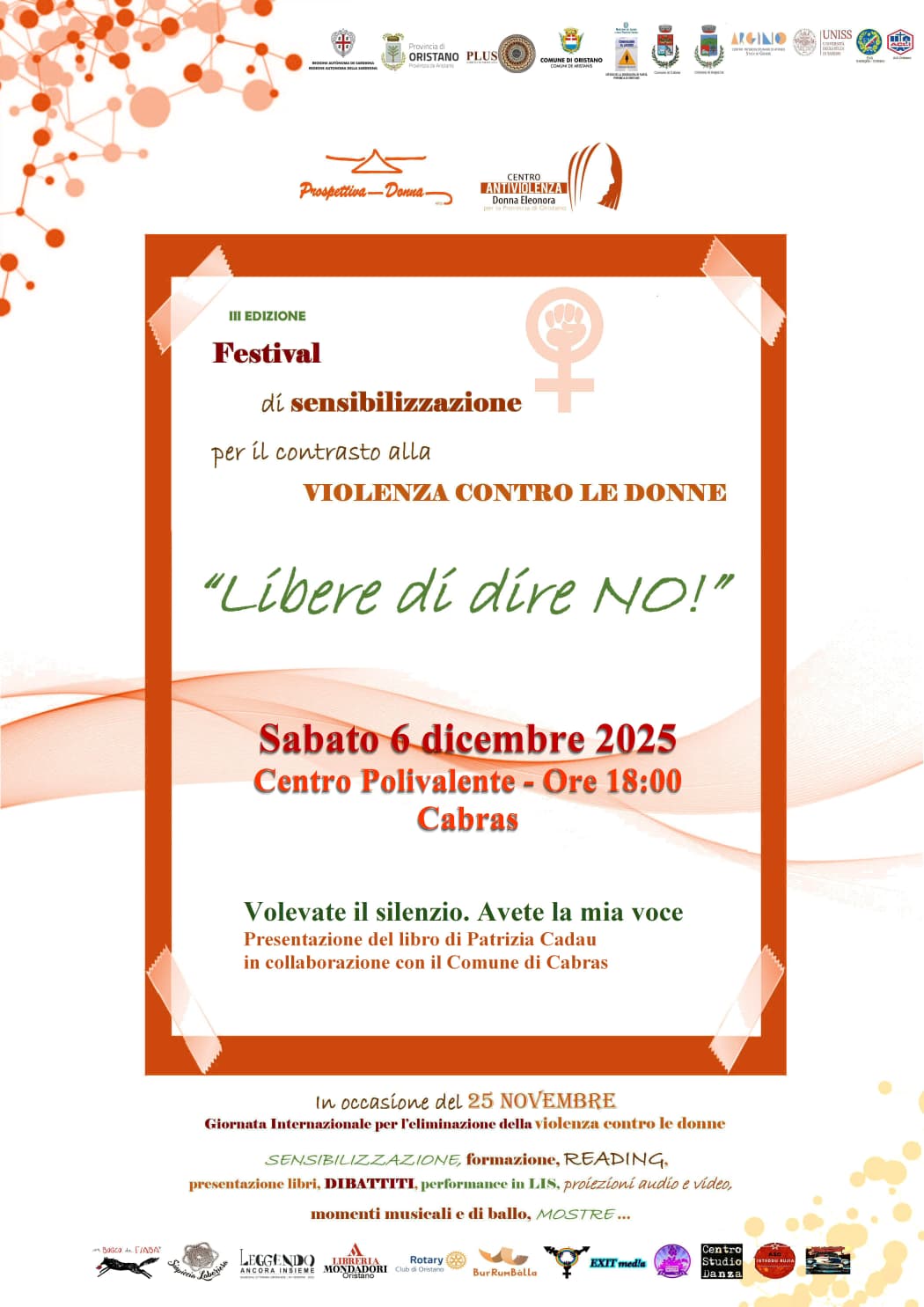 “L’incontro con le scuole di Cabras il 24 novembre e la presentazione del libro di Patrizia Cadau il 6 dicembre sono momenti fondamentali per costruire una comunità più consapevole e capace di contrastare la violenza di genere. La prevenzione, a partire dalle scuole, è essenziale per dare alle nuove generazioni strumenti per riconoscere i segnali della violenza e promuovere relazioni basate sul rispetto e sulla parità. Come Consigliera di Parità della Provincia di Oristano ritengo indispensabile trasformare la riflessione in azione concreta, rafforzando la collaborazione tra istituzioni, associazioni e cittadinanza.” – dichiara Consigliera di Parità della Provincia di Oristano Martina Dell’Oro.